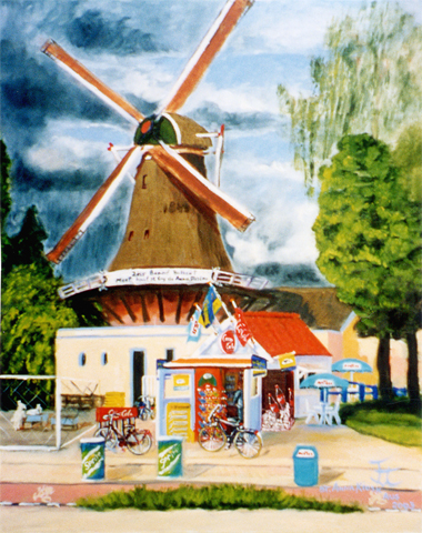Omschrijving: Geinspireerd door alle gezellige reclame toeters en bellen die samen met de molen een kleurrijk geheel vormen. |