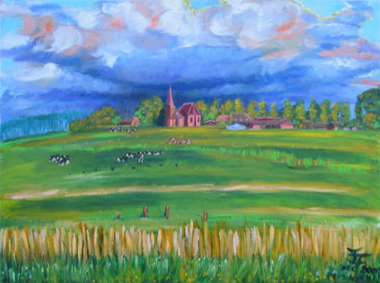 | Titel: Het kerkje van Persingen Datum: 2005 Techniek: Olieverf op canvas Afmetingen: 60cm x 80cm